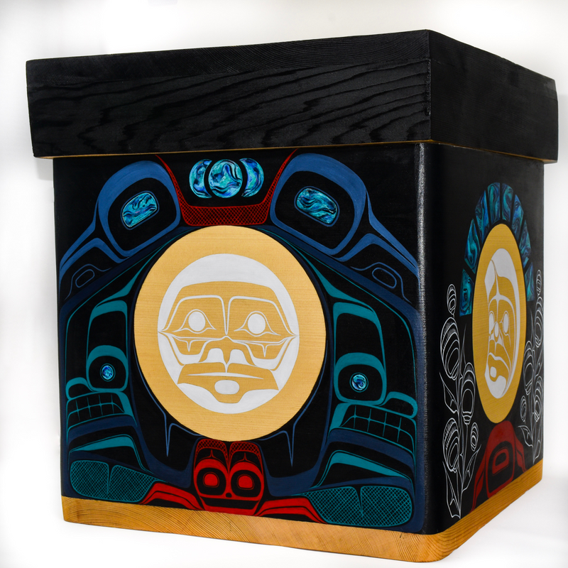 A master Haida Artist recognized for his numerous and significant contributions to protecting and advancing Haida culture. He is known for producing significant traditional ceremonial objects such as masks, bentwood drums and dance regalia. An accomplished dancer and singer with the Rainbow Creek Dancers, a Haida dance group formed in 1980 by Reg and his brother Robert Davidson, he shares his passion of his culture, art and life with his grandchildren. As an avid fisherman, he has provided his elders with food while participating in ecological protection projects that help safeguard the abundance of sea life in Haida Gwaii. Reg’s carvings have been commissioned locally and internationally, and many can be viewed right in BC, including a large sculpture grouping of the Blind Halibut Fisherman at Vancouver International Airport. Over many decades of committed artistry, Reg at his studio, has trained, taught and employed many artists who live in and off Haida Gwaii. With no art schools in Haida Gwaii, Reg has become a mentor of artistic education for younger local artists and has a new collaboration of eco-friendly fashion with Wendy Van Reisen creator of Dahlia Drive called Yaahlguudtsai - Raven, Eagles, Polka Dots; sustainable women's clothing celebrating Haida formline.